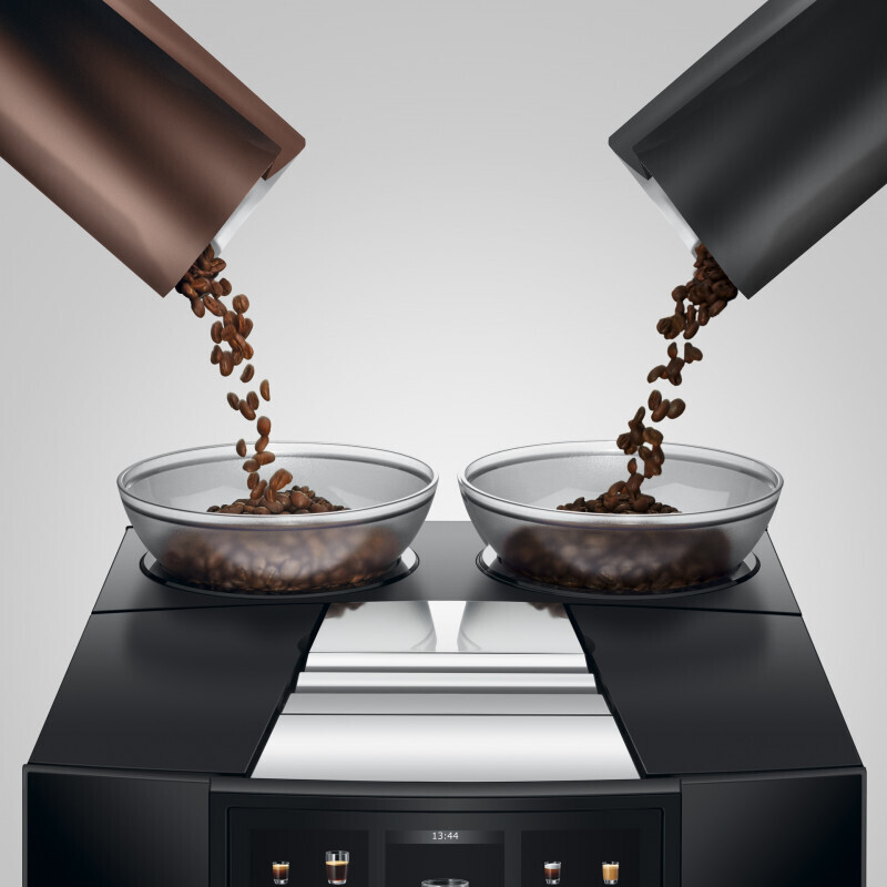 Для достижения максимального профессионализма GIGA 10 оснащена не одной, а двумя высокопроизводительными кофемолками, изготовленными из долговечного высококачественного керамического материала. Два контейнера для зерен с элегантным турбинным дизайном соединены каждый с отдельной кофемолкой, что позволяет вам выбрать идеальный сорт кофе или оптимальную смесь для каждой чашки. Например, вы можете выбрать более интенсивную, темную обжарку для приготовления ароматного эспрессо и среднюю обжарку для мягкого лунго или кофе с молоком.